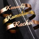 This custom name open bangle is a stylish and unique accessory designed to showcase your individuality. Made with a sleek gold-tone finish, this personalized cuff bracelet features a beautifully crafted name design with a delicate heart accent. Whether as a gift for a loved one or a statement piece for yourself, this bangle adds a touch of elegance to any outfit.