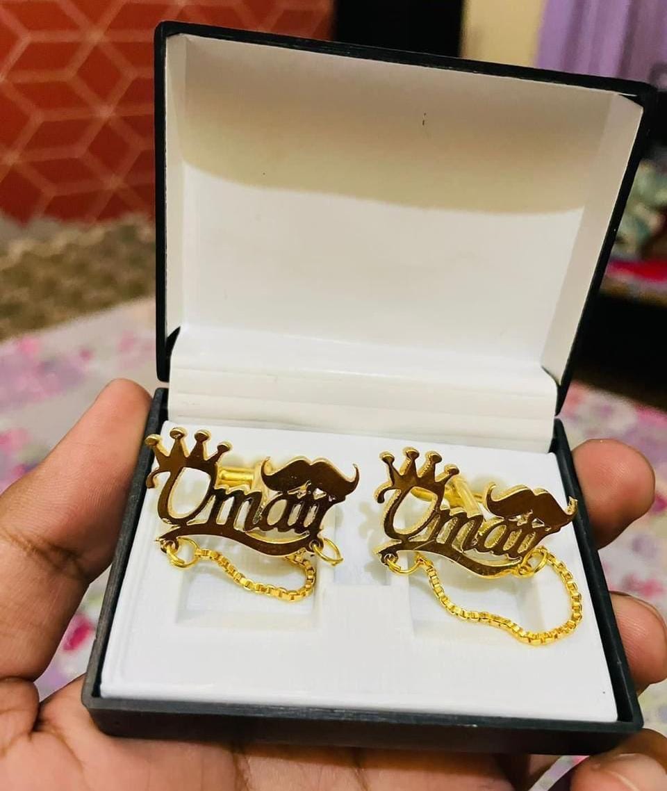 Make a bold fashion statement with these Personalized Crown Name Cufflinks – the perfect blend of style, luxury, and personalization. These custom-made cufflinks feature a royal crown design, elegant name engraving, and a sleek mustache accent, adding a unique and sophisticated touch to any formal outfit. A great choice for weddings, corporate events, and special occasions, these cufflinks make a memorable gift for grooms, executives, and fashion-forward individuals.